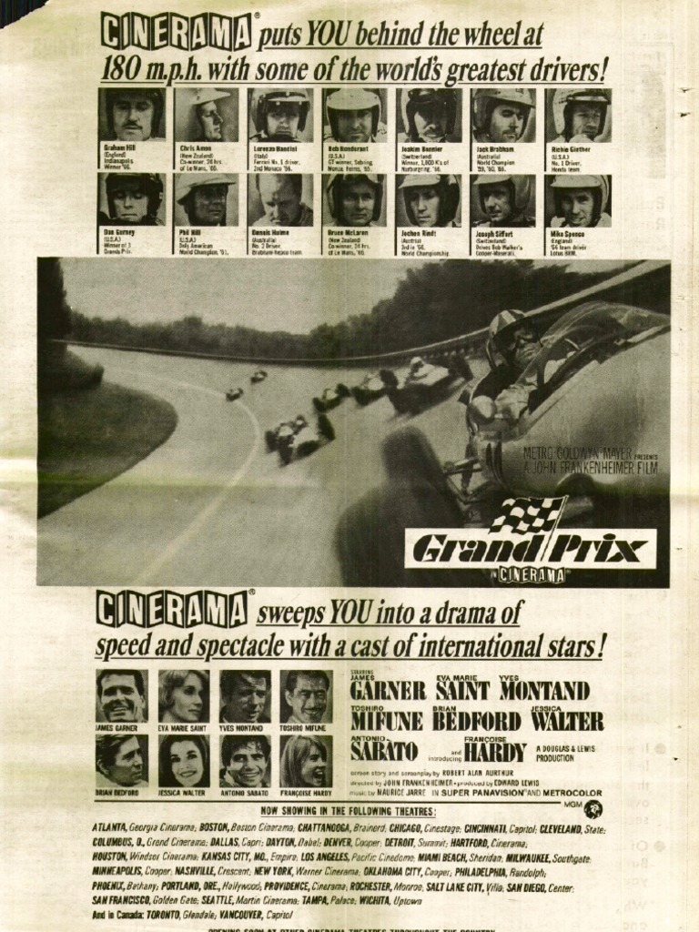 1966 american action film by john. The picture was directed by john frankenheimer with music by maurice jarre and stars james garner, eva marie saint, yves montand. Dwaj kierowcy formuły 1 zmagają się z różnymi przeciwnościami. Grand prix is a 1966 american action film with an international cast. Grand prix is a 1966 american sports drama film directed by john frankenheimer, produced by edward lewis, and written by robert alan aurthur with uncredited story contributions by. Ив монтан, джеймс гарнер, ева мари сейнт и др. Автогонщик пит арон выгнан из команды после несчастного случая в монако, в котором был ранен его товарищ скотт стоддарт. A full length puppet film!» Grand prix is a 1966 american action film with an international cast. Pete musi opuścić zespół, zaś scott leczy rany po ciężkim wypadku na torze. It starred james garner, eva marie saint, yves montand, brian bedford and antonio. Grand prix is an action film released in 1966. «the race of the century.